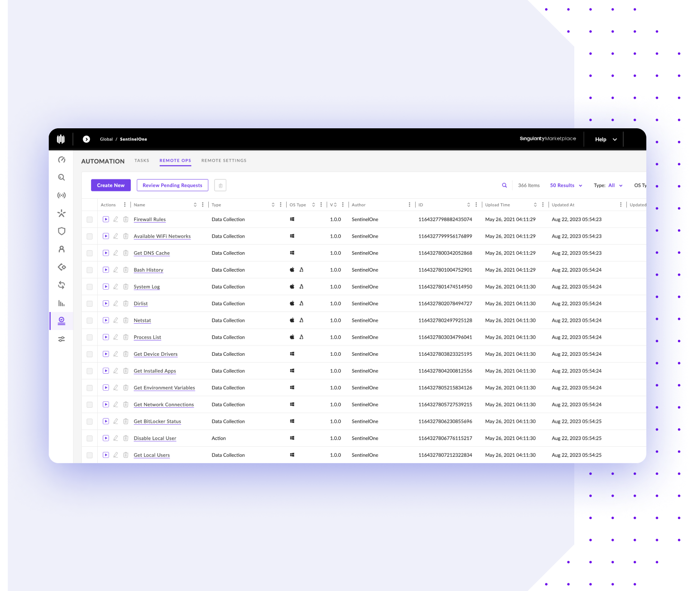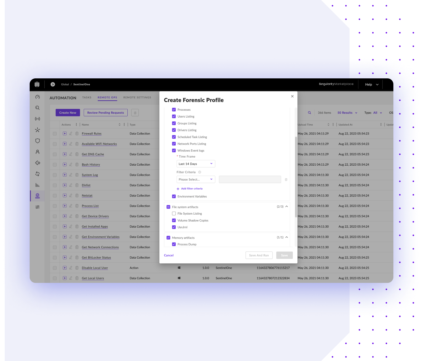- Phân tích các kết quả thu thập bằng chứng được nhập và phân tích cú pháp vào Hồ dữ liệu bảo mật SentinelOne để chủ động chống lại các mối đe dọa.